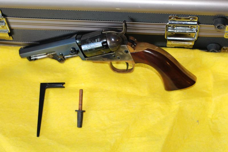 6.- Colt pocket 31. de Uberti. Un revolver precioso en un estado excelente, solo hay que cambiar el reten del tambor pues a veces hay que ayudarle a girar al presionar el martillo. Pendiente de comprarlo cuando fuera a Trelles. Solo ha disparado 3 tambores. Viene con su llave de chimenea propia y una pequeña herramienta para hacer cartuchos de papel. 250E DISPONIBLE!!!