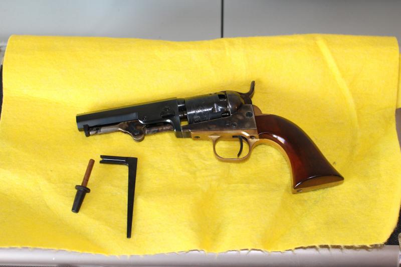 Colt pocket 31. de Uberti. Un revolver precioso en un estado excelente, solo hay que cambiar el reten del tambor pues a veces hay que ayudarle a girar al presionar el martillo. Pendiente de comprarlo cuando fuera a Trelles. Solo ha disparado 3 tambores. Viene con su llave de chimenea propia y una pequeña herramienta para hacer cartuchos de papel. 250 Euros mas envío si lo hubiera.