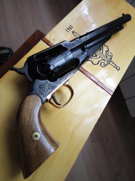 Vendo el revolver de las fotorfías, el grabado, el del medio en la primera foto, el anterior dueño lo tenia sin disparar, guiado con el DNI me dijo que fue un regalo de empresa, de cuando se regalaban esas cosas..., yo tampoco lo he disparado, lo he tenido de colección, atendiendo al estado del piecerio interior, está nuevo, aunque externamente tiene marcas de manipulación y las inherentes al paso del tiempo.