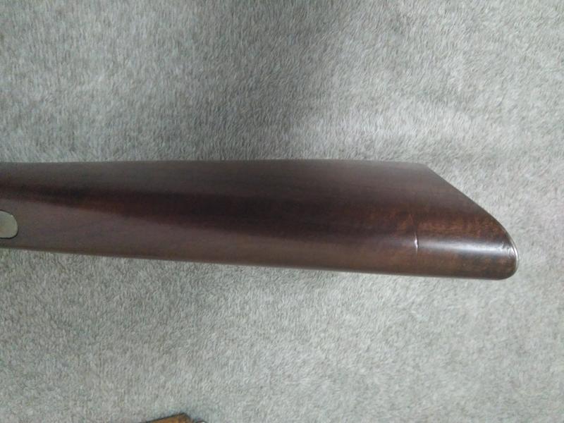 Y por ultimo, los unicos defectos visuales que le he encontrado, la parte trasera de la culata, por debajo ligeramente marcada, seguramente de apoyar en el banco de tiro o de la puerta del armero, un picotazo pequeño en el guardamanos y un pequeño golpecito en la punta del cañon por fuera, no son gran cosa pero prefiero enseñarlo.