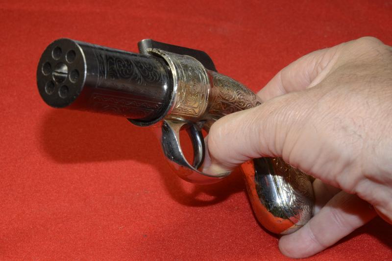 ***Vendido*** revolver de avancarga avispero o pimentero del Cal. 5,6 mm., de fabricación española de hace años. Las únicas inscripciones que tiene son "Black power only" y "Spain". Funciona perfectamente. Está en muy buen estado de conservación con algunas pequeñas marcas de uso en la zona de las chimeneas y en la cabeza del martillo percutor. Yo no lo he disparado nunca, lo he tenido como pieza de colección. Precio 250 € porte incluido, no negociable y no interesado en cambios.