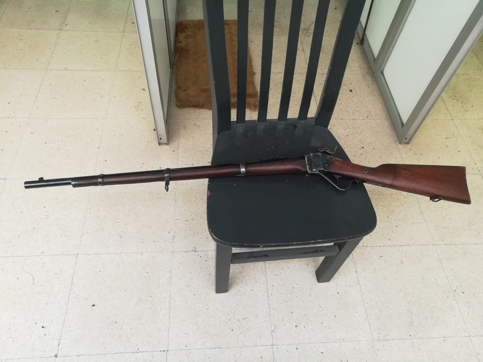 Hola. Un amigo del Club Principado de Oviedo me pide que le anuncie la venta de este rifle. Es un Sharp 1859, modelo militar, calibre 54. De Army Sport. Está en perfecto estado.