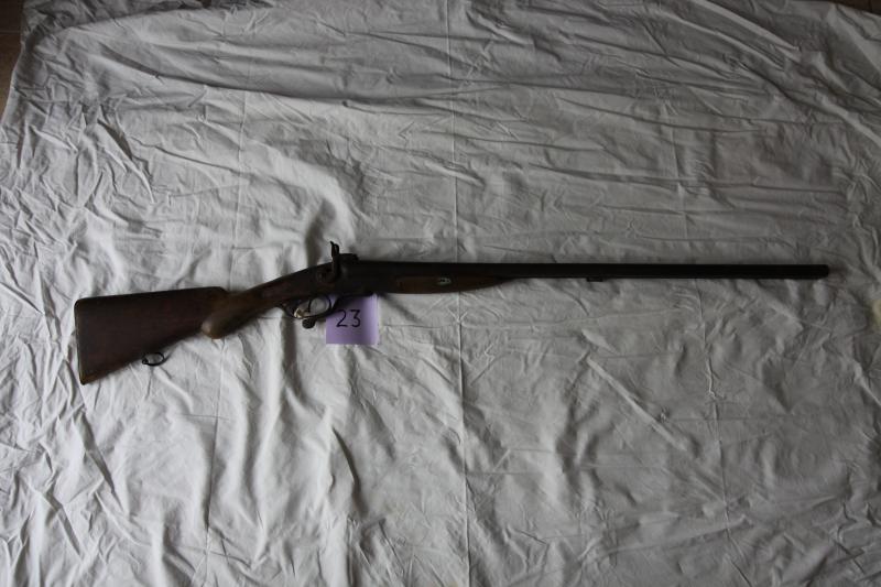Escopeta de caza de retrocarga, de dos cañones. Fuego anular. Mecanismo de tipo Lafoucheux con muelle real interno y trasero.
