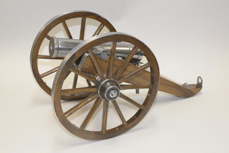 VENDO magnifica maqueta de cañón de avancarga, fabricado hace unos 50 años por el taller armero eibarrés Jukar. Es una autentica rareza, debe de tratarse de un ejemplar único, un prototipo que fabricó Jukar y no llego a ser comercializado. Cal. 58, ánima extriada, tubo y herrajes de acero, cureña de madera de haya barnizada. Medidas, largo total 56 cm., altura 30 cm., anchura 25 cm., longitud del cañon 30 cm., diametro de las ruedas 30 cm. y peso 7,3 kg. Esta previsto para realizar fuego real estado de conservación perfecto, sin oxido ni golpes, con muy ligeras marcas de uso. Precio 600 € más portes, no negociables y no interesado en cambios.