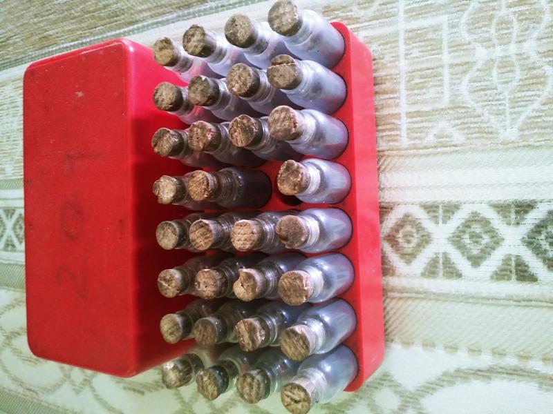 Caja con 31 tubos para dosis de pólvora negra, también pueden ser utilizados para almacenar dosis de sémola, para aquellos que no utilizan tacos de fieltro la forma más sencilla y rápida de recargar. 22€