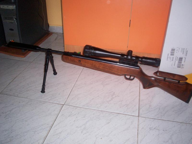 te la recomiendo tengo una en 5.5 con un visor tasco target varmint a 50 metros haces blanco sin problema y no la cambio por nada por cierto la bocacha si sirve le quita bastante ruido aunque el taponazo del muelle no hay quien se lo quite