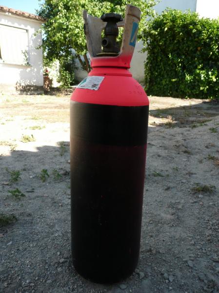 Igual te es mas fácil y barato hacerte con una botella de CO2, que usan en bares para tirar cañas de cerveza o un extintor de CO2 y cargarla con ella.