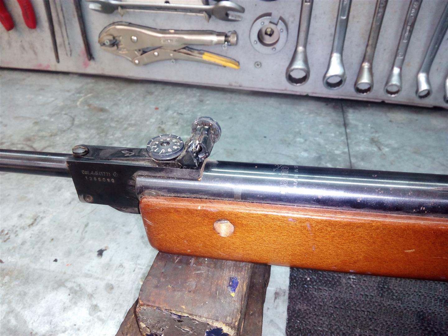 Hola compis, os pido vuestra ayuda para identificar este modelo de Gamo que un amigo me ha dejado para que se la ponga al día, no tenemos ni idea que modelo puede ser, y así es muy dificil buscar recambio para ella. No trae ni sello.