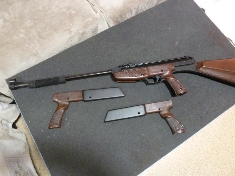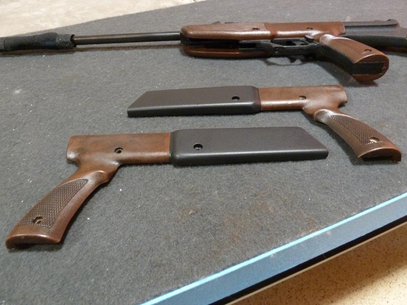 Aprovechando la pintura que compré para el conjunto soporte del visor... he modificado dos piezas (cachas con pistolet) que conservo como recambio de una antigua Gamo 68 en mal estado.