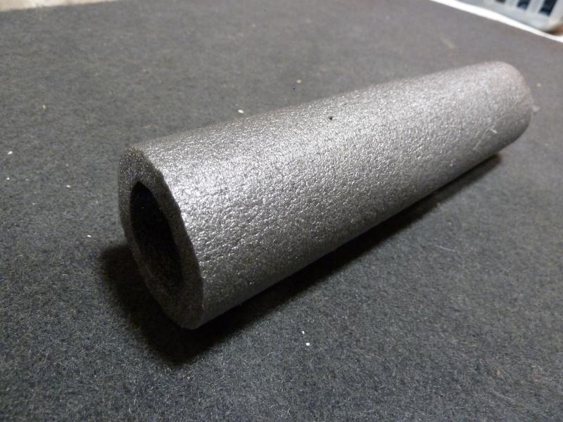 Un trozo de coquilla de polietileno (aislante para tubería de cobre), lo corto a medida y el trozo sobrante lo utilizo como grueso de altura pegándolo en el interior con cinta adhesiva de dos caras.