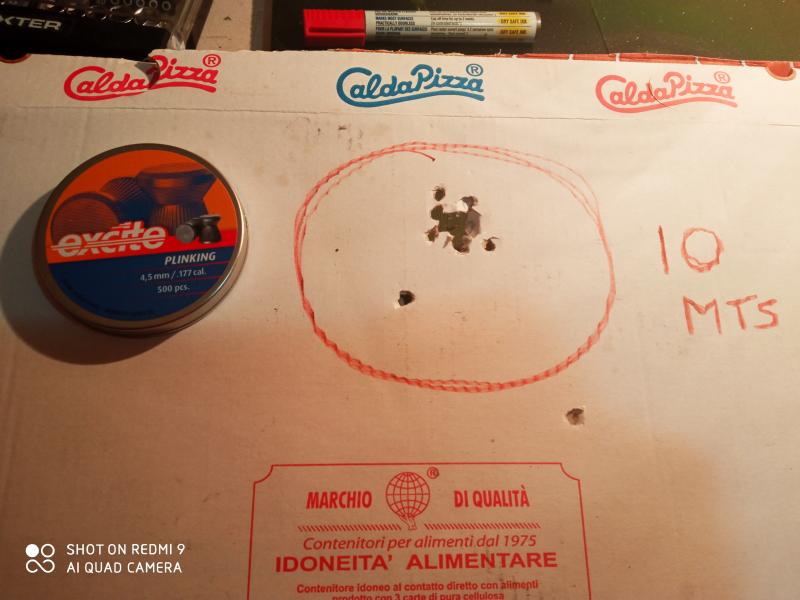 En Italia tenemos un límite de 7,5 julios para rifles de aire comprimido. Más de 7.5 julios, los rifles requieren una licencia de arma de fuego. Todavía tengo que montar la culata, pero he montado el fusil y todo funciona. Los tornillos que se muestran en la foto son temporales. Probé a una distancia de 10 mts y más o menos la potencia debería estar dentro de los 7.5 julios.El rifle es un recuerdo familiar, colgado en la pared durante décadas. Después de montar el todos volverá al mismo lugar.Cuando termine el trabajo, haré una decina de tiros desde 10 mts e insertaré las fotos.