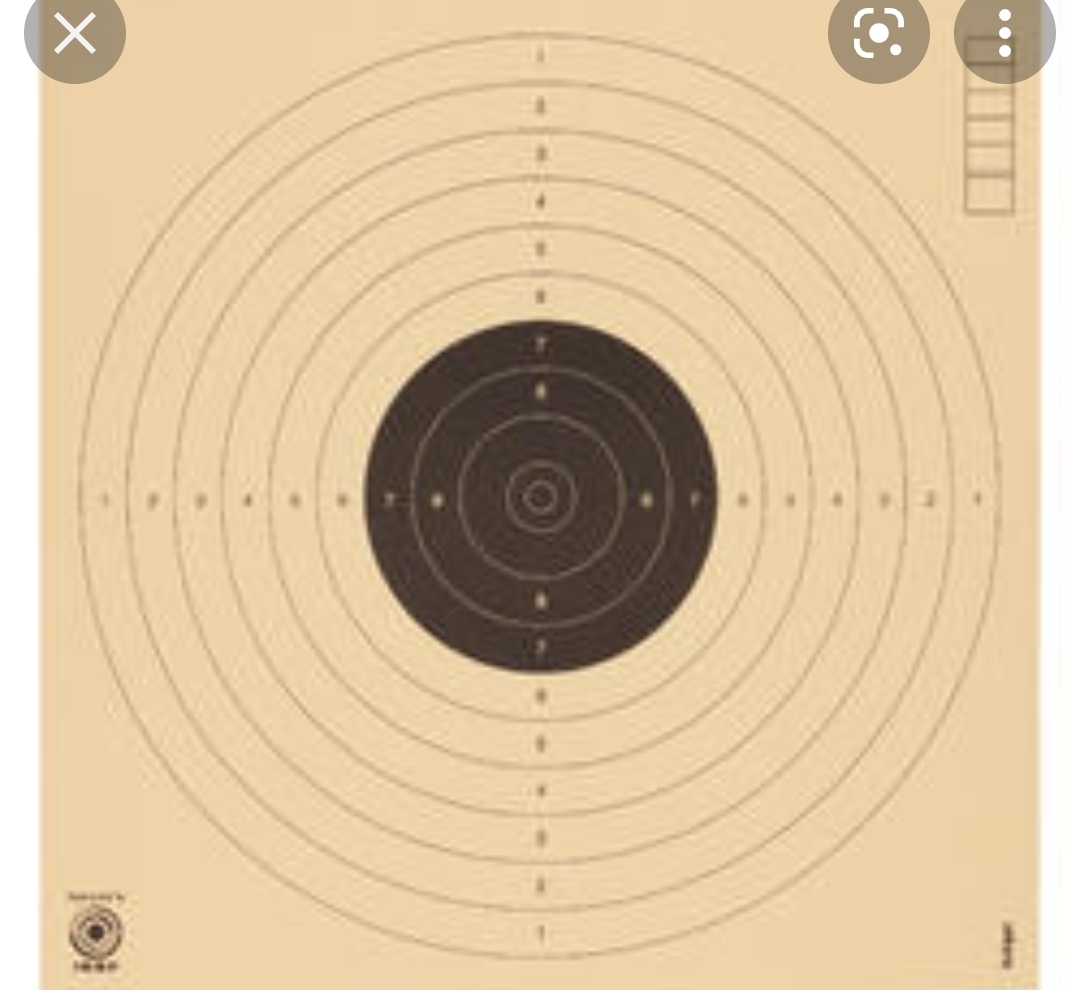 Ya que tienes esa pistola y estás disparando a 10 m. Deberías usar la diana oficial para la modalidad. Y no se si tendrás reguladas las miras para apuntar a pie de diana, que es como se debe apuntar.
