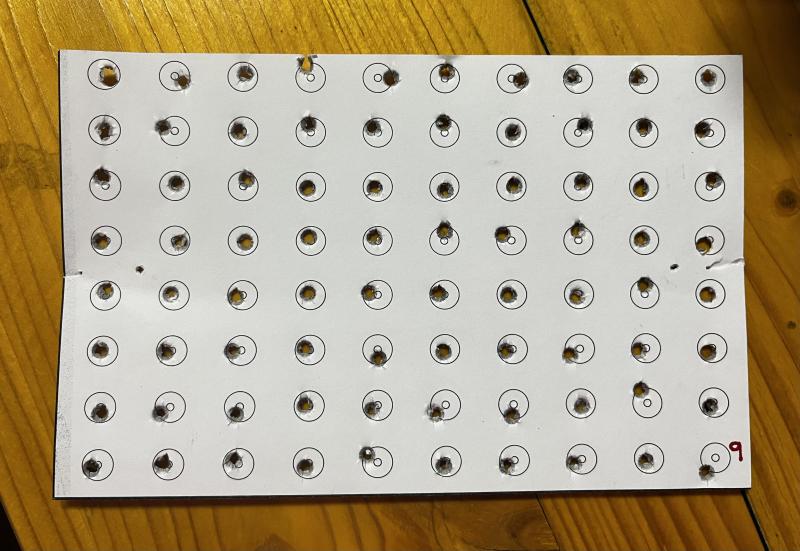 Pues muy buenas dianas,cuando as puesto la velocidad me sorprendió bastante,me pareció mucha,pero mire unos apuntes del año 2023 cuando probé los QYS,y resulta que en mi steyr tambien llegaron a funcionar muy bien y tambien a altas velocidades,de hecho el que mejor me funciono fue el Streamline de 0.62 en 4,49 a 275 m/s que son 23,40 julios con una desviación de 2 m/s.De hecho compre los 8 modelos que había y realice pruebas de 16 hasta 24 julios,en las pruebas conseguí desviaciones muy bajas a distintas velocidades,pero no agrupaban,no eran válidas para BR.