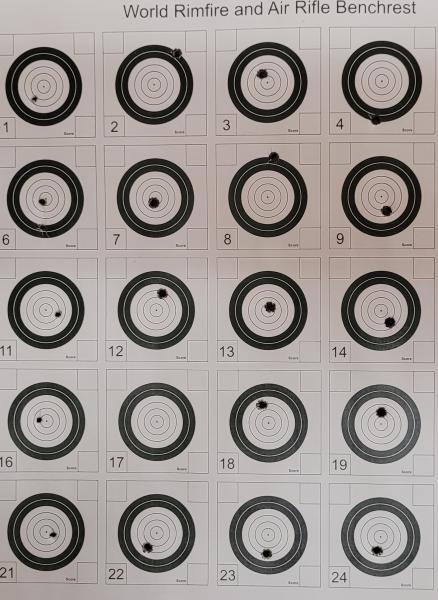 Bns tds, como el dicho, vale más una imágen que mil palabras, inserto una foto de unos cuantos tiros a 50m, en la columna de la izquierda los tiros son con 4,5 , el resto de dianas son con 5,5