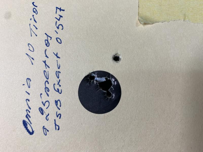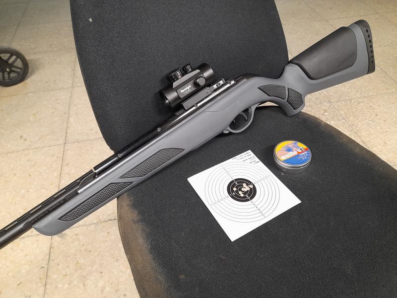Bueno pues aquí mi primera diana con el nuevo chinoscopio de punto rojo que le he puesto a la Gamo Viper Express. Son diez disparos de pie y a pulso a casi diez metros utilizando balines Excite Plinking. El cañón de esta carabina es de ánima lisa, por lo que no ofrece gran precisión, pero para tiro rápido e intuitivo a corta distancia cumple bien. Saludos!!