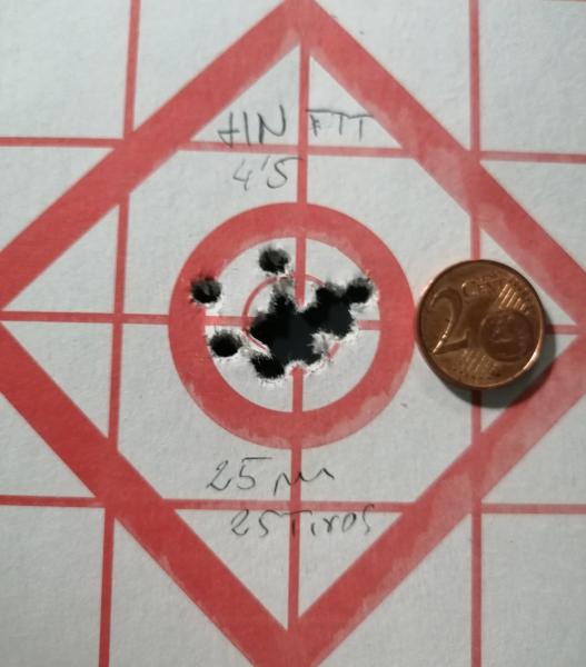 Realizada ayer tarde estrenando un visor, son 10 tiros a 25 metros, el primero fuera y tuve que corregir.