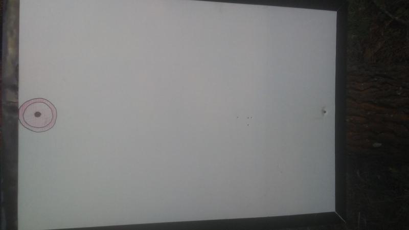 Pues ahi van las fotos. A 50 y 100m (bueno, 99 ya que puse la diana ennotro pino mas adelantado pero menos torcido).