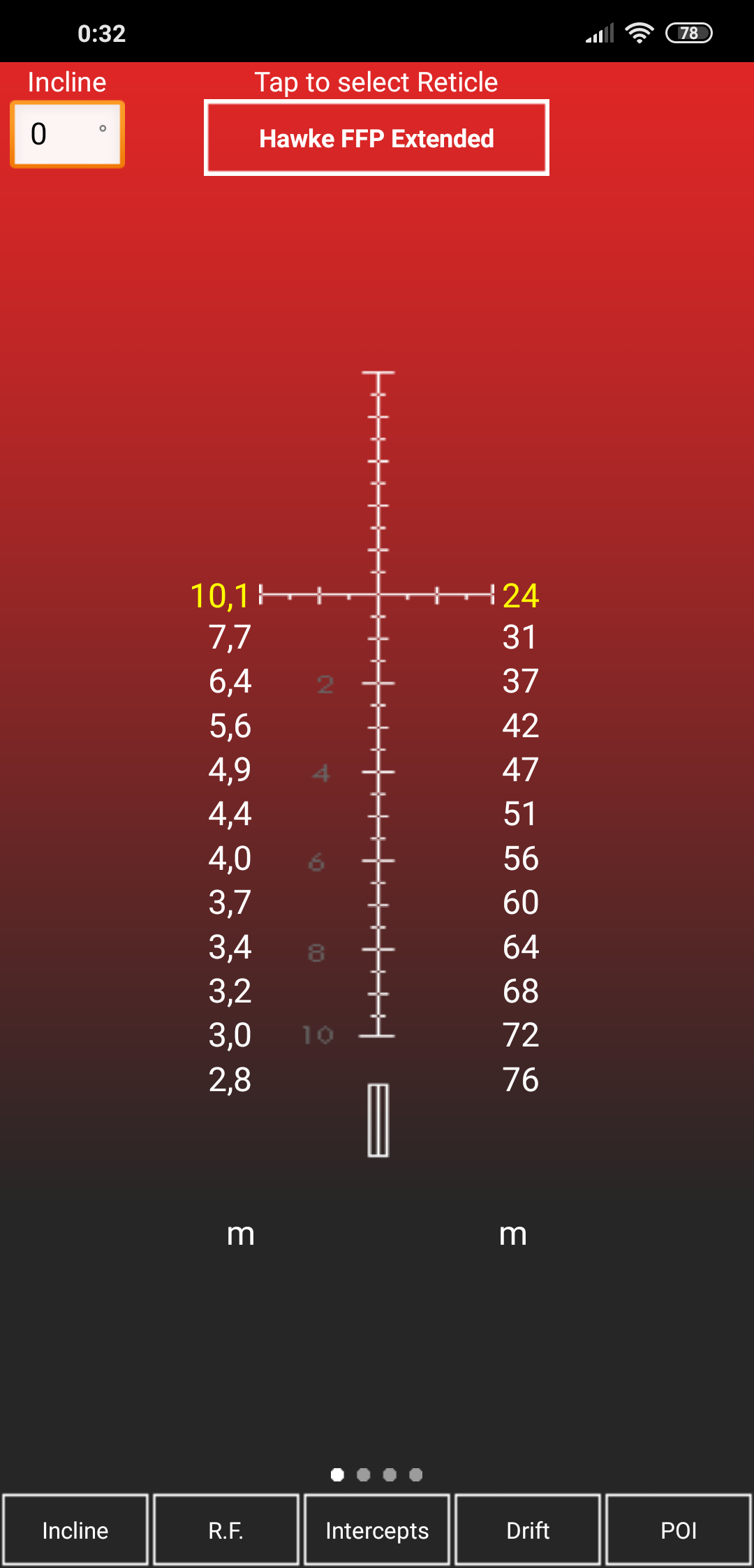 Por otro lado, en esta pantalla en la parte izquierda me salía una barra para elegir la distancia a la que vas a disparar, y en la retícula un punto rosa, que es, en que parte de la reticula va a impactar a la distancia que seleccionemos...pero, ahora no me sale, he intentado buscar en toda la aplicación alguna opción para ponerla...he desinstalado la aplicación y la he vuelto a instalar...y tampoco...a ver si me podéis echar una mano a volverla a poner porque me resultaba muy útil.