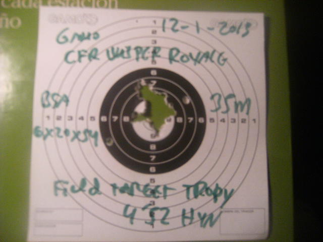 quote="chelin12"]Hola compañeros ,esta tarde me he hechado un mano a mano entre la cfr wisper royal y la tx200,estos son los resultados ,a 35mcon saquito delantero,el próximo será con la hw97 y la diana 54.