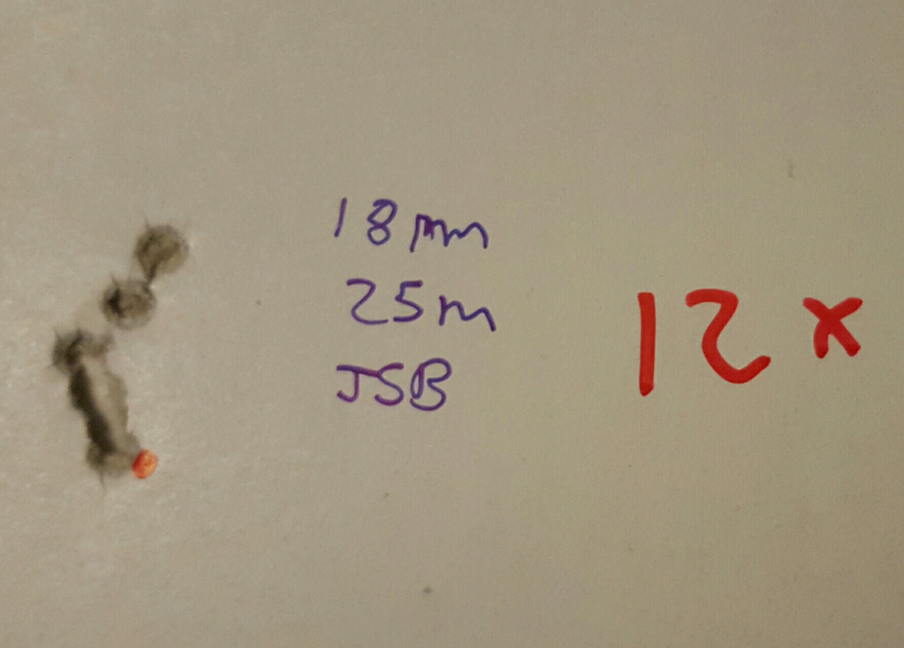 Los resultados: con jsb exact 5 disparos en 18 mm a 25 m. Con jsb rs 5 en 28 mm (ojo que esta mal rotulada la diana). Como anecdota los predator metalmag 40 mm 5 disparos a 25 m. Los jsb tienen menos peso que los normales pero iban mas bajos los tiros (¿¡¿¡¿¿¡¿???)