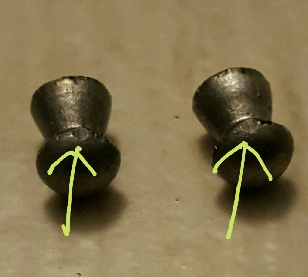 Estimados amigos todos: esta mañana antes de llamar a Cometa he coido un balin jsb y lo he dispuesto en el arma como si fuera a disparar. A continuacion le he empujado suavemente con una baqueta de limpieza sin la feminela puesta. He notado que los primeros centimetros hay que empujarle algo al balin, luego recorre el cañon muy facilmente (me imagino porque la falda ya se ha comprimido algo) y en el extremo final (1 cm antes de la boca de fuego) ya tengo que ejercer cierta fuerza. Lo vuelvo a repetir y cual es mi sorpresa al examinar los balines que quedan marcados. Por tanto no es un agujero lo del cañon sino una protuberancia o grano. Esta no es de cola ni nada por el estilo. Es metal. Cuando probe a meterle algo para verificar si era agujero o no (que por cierto falle en determinarlo) pude comprobar que era algo metalico.
