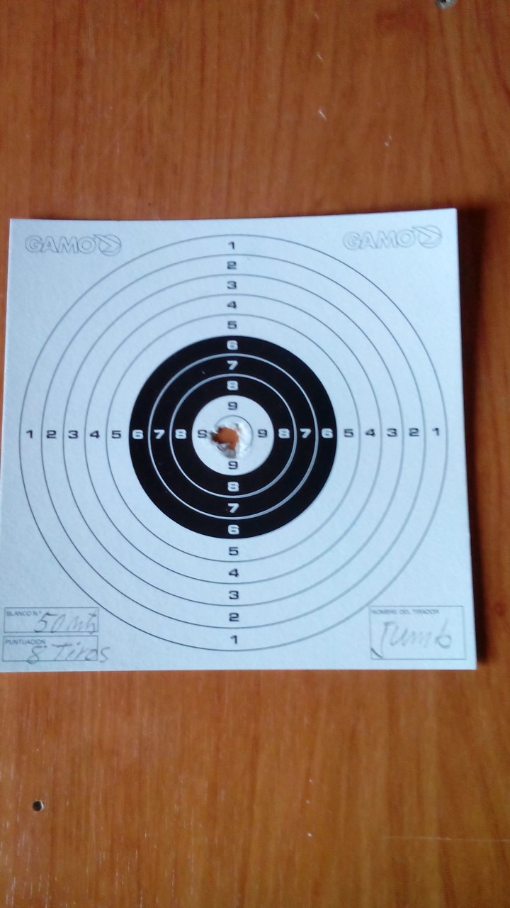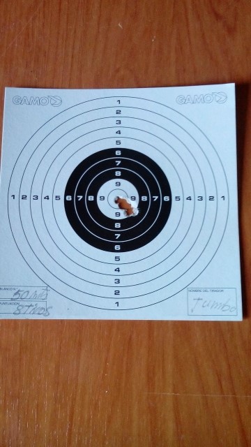 y bastante precisa a 35mts hace mono agujero como el de la foto con mucha facilidad, es la que mas uso, casi a diario, por que la dejo en la parcela hago buenos grupos como los mostrados anterior mente y me vengó a riba, diciendo esta agrupa como la wildcat, al día siguiente pruebo la FX, y amigo mío esta es la ostia hace lo mismo a 50mts, si han solucionado el problema del regulador si la recomiendo, si no mejor la p12 un poquito de bricolaje instalar regulador, aligerar martillo, muelle, y poco mas