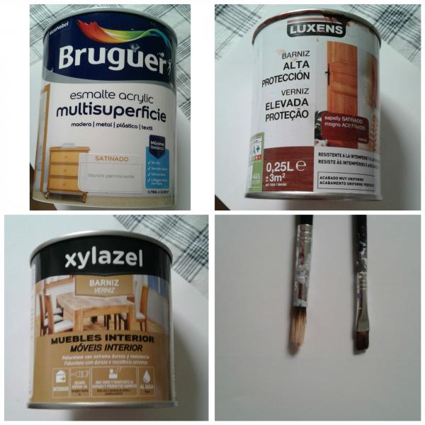 Despues con brocha mas dura barnizamos esos sitios donde hemos quitado vinilo. Hay que hacerlo con movimientos lineales para que parezca mas a la textura de madera. Asi ponemos unos 2-3 capas, hay que mirar que color te sale.