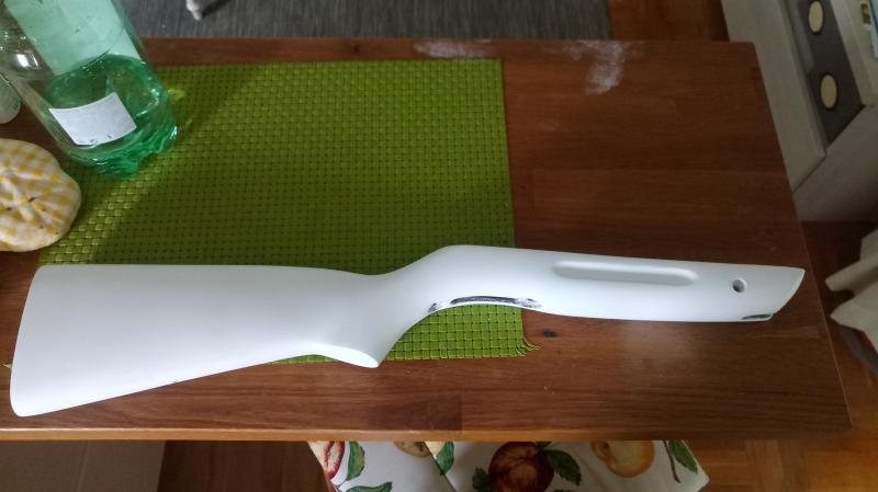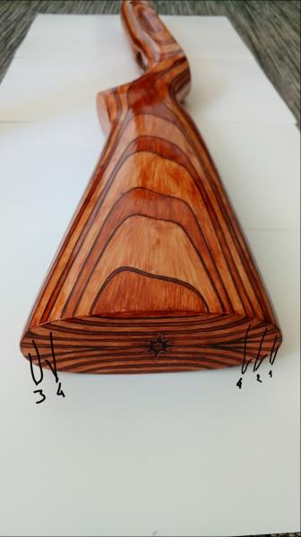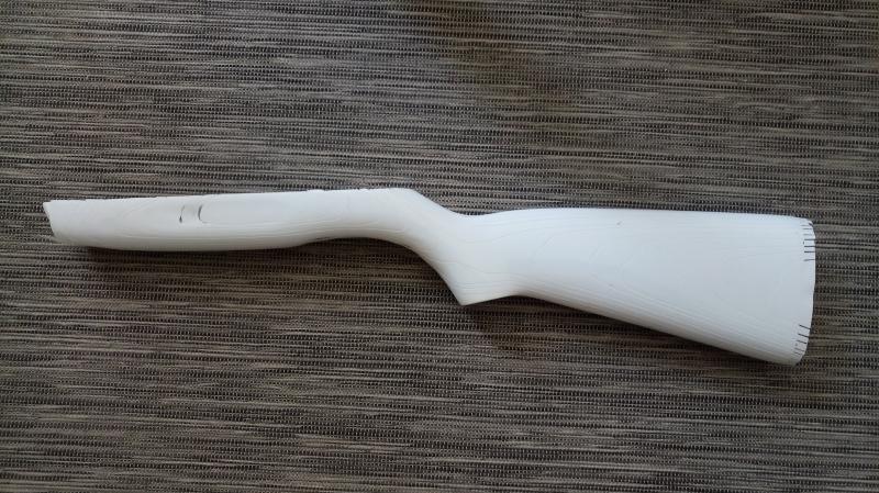 Coges un par de hojas A4 y haces una hoja ancha. Pones encima tu culata y con boligrafo dibujas silueta de culata. Dentro de esa silueta dibujas textura de madera.