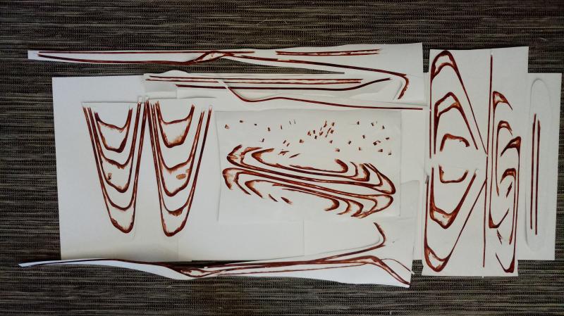 Unica cosa hay que acordar es que cortamos partes mas claras y partes oscuros por ahora dejamos sin tapar. Esos partes de textura lateral tambien primero cortamos en papel de dibujo 2, ponemos a la culata y si esta bien cortamos en vinilo dos caras y asi hasta que todas partes claras de textura lateral no esta puesta