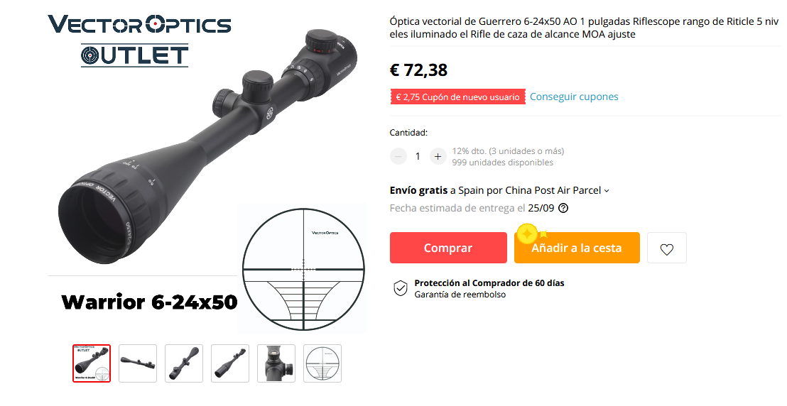 Jabril escribió:Hola Manolo, buenas noches, te estaba echando de menos, jeje. Ayyyy mareeeee, me hierven las neuronas por aquello del "quiero y no puedo" jaajajjaaa, bueno, he visto algo a partir de la recomendación de FoKingIrish, respecto a los Vector Optics, que parece que podré ir a por él, si es que por vuestra parte no veis algo raro en ese visor. He aquí
