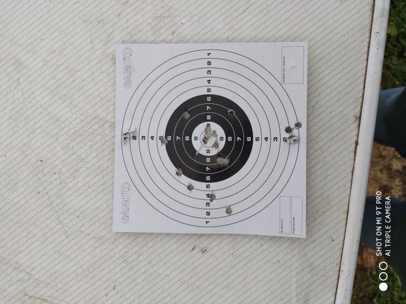 Los tiros que van a la izquierda son a causa de unos vientos huracanados, paro un momento y me dejó hacer esta agrupación que no sale del 9