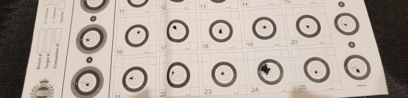 adjunto una prueba ayer a 25 metros, digo prueba por que estoy probando saco de tiro trasero, en el grupito de la 24 hay unos 8/10 tiros