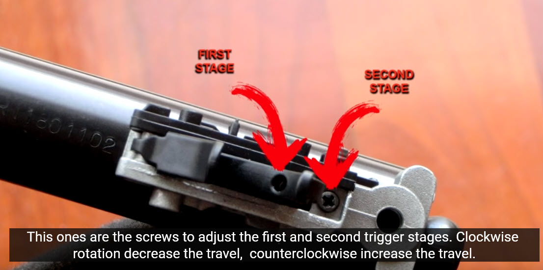 El segundo tiempo del gatillo se me hace eterno incluso apretando al máximo el tornillo de regulación que debe acortarlo, me recuerda mucho a una gamo CF30 en eso. Será cuestión de acostumbrarse pero me gusta que el segundo tiempo sea muy corto, a mi eso me da precisión a la hora de disparar.