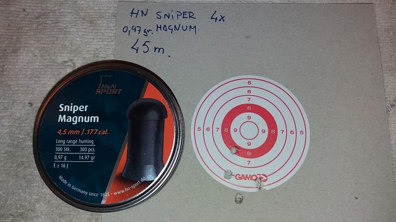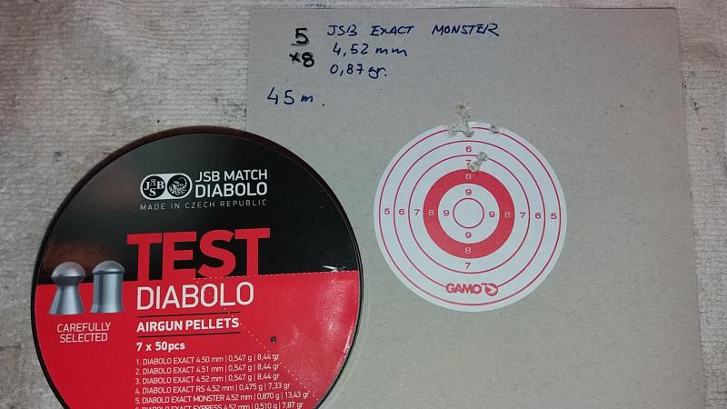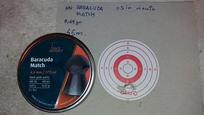 Pues si y no, todavia estoy haciendo pruebas porque el tiempo no acompaña y con viento no las hago porque me llevaria a errores. Dejo las pruebas que he hecho, a 45m y de momento van ganando los H&N y de todos los JSB que he probado tan solo unos podrían valerme a falta de repetir las pruebas de unos cuantos finalistas de los muchos que he probado.