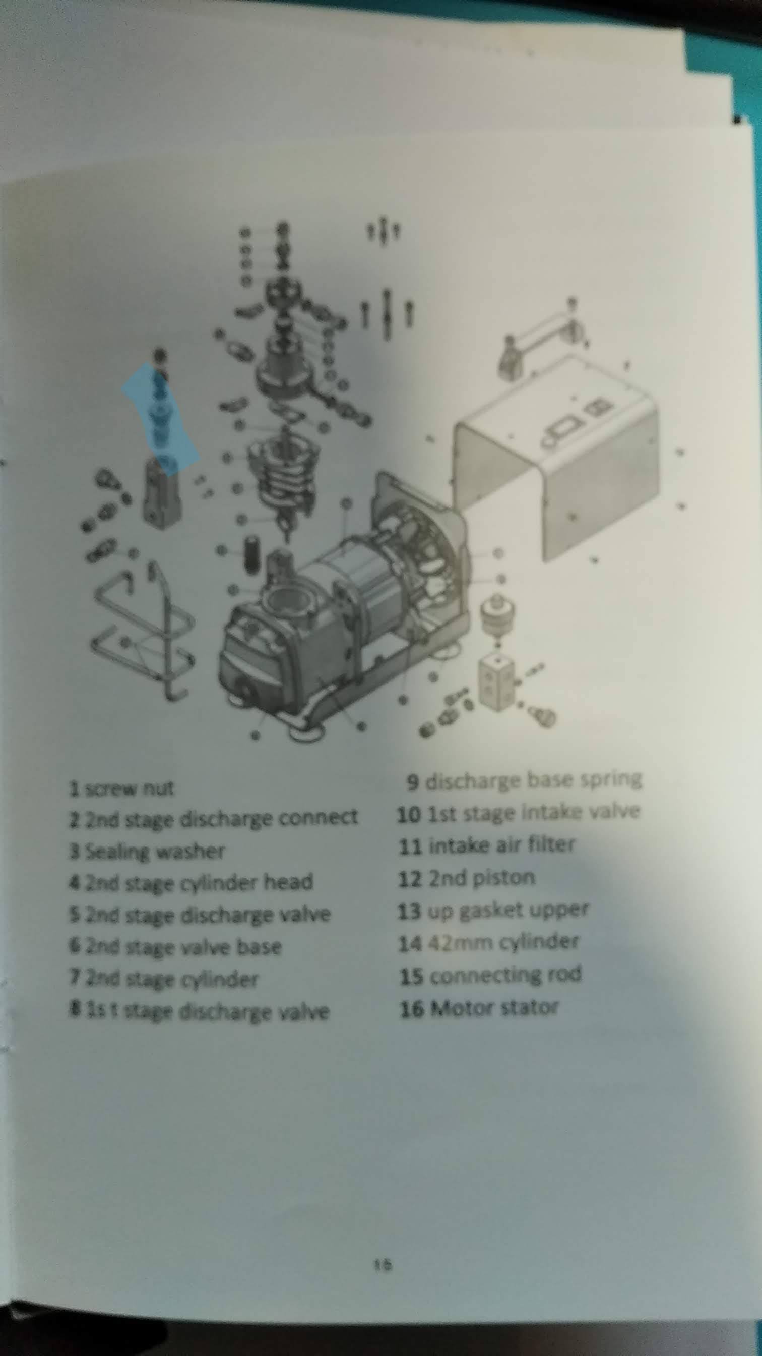 Hola, tienes el mismo manual que tengo yo y dos amigos mios pues compramos tres vevor con muy poca diferencia de tiempo, en la tapa debajo del todo del dibujo del compresor que no lleva ningun nombre inscrito pone :YH-QBO1. Otro amigo que tiene el yong heng tiene el mismo manual, el mismo, con las mismas letras, la unica diferencia es que en el dibujito del compresor en el suyo pone Yong heng i en el nuestro lo han borrado. Nos dan gato por liebre. En el yong heng el despiece coincide plenamente con el manual, pero con el nuestro solo coincide parcialmente, la parte de la alta presion no coincide en nada, y en nuestros vevor ese filtro que mencionas no esta, por mucho que este dibujado, y funcionan sin hechar aceite.