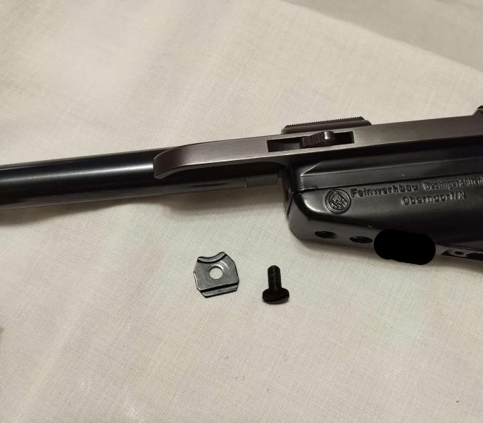 Aquí la 80, con el embellecedor que remata los contrapesos, bien….. pues una pieza similar, pero con un orificio en la parte de arriba para que pueda atornillar en el orificio de la parte superior y así haciendo tope con la inferior, anular la acción de desplazamiento hacia atrás de la parte superior…….. conseguiremos un disparo más parecido al de una pistola de fuego….pero para mi la esencia de estas pistolas es justo su sistema antirretroceso, bueno, se pueden utilizar de las dos maneras según gustos y necesidades.