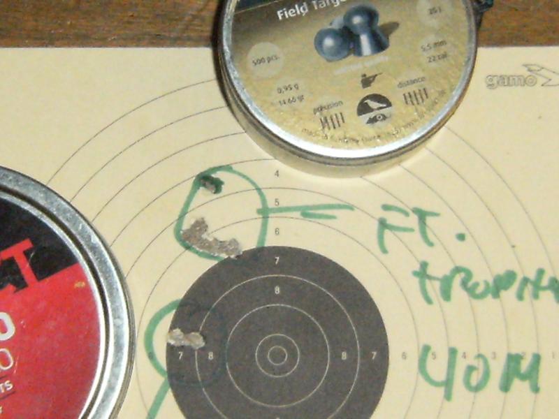 Bueno , bueno pues el compañero gepa me ha picado y una hatsan 125 nuevecita de un amigo que la ha dejado en casa por imposible , la he rellenado la culata de arena y a 40m estos son los resultados , no he tirado mas lejos pues el 4x32 y mis 48 recién cumplidos no me lo permiten, he disparado con jsb y hyn ft, trophy es lo que tenía me hubiera gustado tirar con baracuda matcht, otro dia será.Para mi los resultados cojonudos , el rellenar la culata ha cambiado a este fierro terriblemente potente,no es un farol estas dos agrupaciones en mi c. de tiro se puede probar.6 disparos con cada balin.