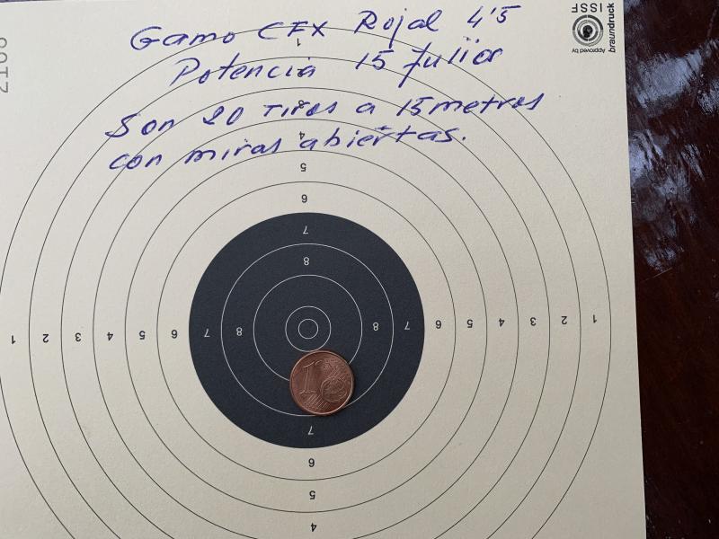 En total hoy solamente he podido disparar 31 tiros, entre comprobar potencia, regular el alza y una serie de 20 disparos a diana para ver que tal agrupaba solamente a la distancia de 15 metros con miras abiertas.