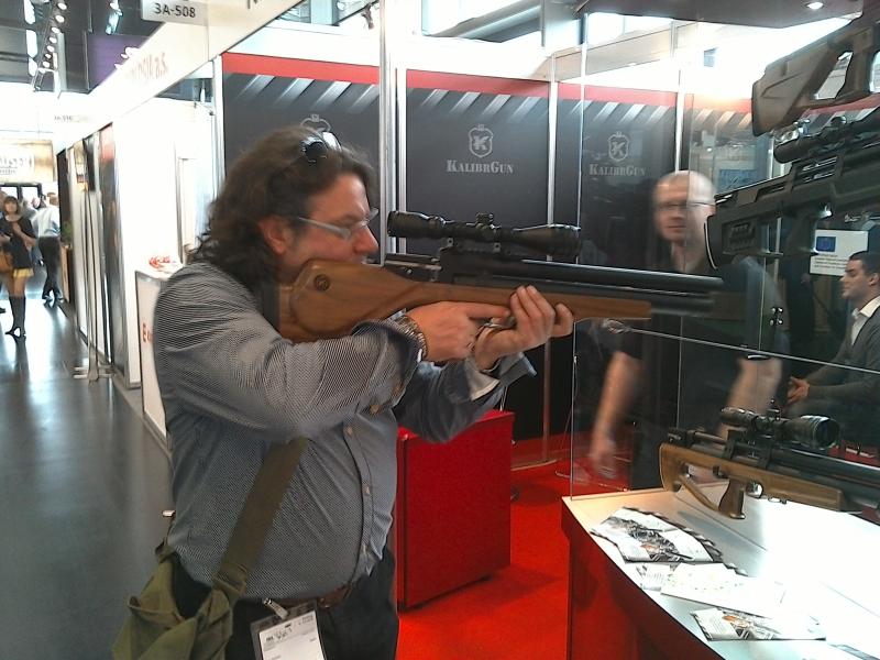 ahi tenemos su expositor , que me habria traido en la maleta , tenemos la nueva Colibri semi-auto en cal. .177-.22,seguida de su modelo estrella de ventas la cricekt , el tercero es la novedad una carabina entre bulpup y carbine con un encare acojonante y muy equilibrada, y la ultima es la criket cal. 9 mm (olvidemonos de esta en España) y por ultimo la pistola Ocelot ya presentada anteriormente