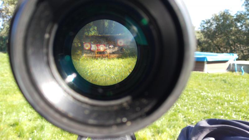 En la página 44 hay un post mio con la primera toma de contacto con la Ares. Lleva una mira china compacta 4x32 de las baratitas, fijada con anillas bajas sobre la parte de atrás del cerrojo, dejando libre la zona de los tornillos para el cambio de cañón. Tras unos pocos disparos para centrarla, puedes ver el resultado sin bípode ni cojin de tirador, apoyando los codos en la mesa. Para un tirador mediocre como yo el resultado fué bueno, aunque en otra prueba y después de retocar un par de clics, he mejorado la agrupación.