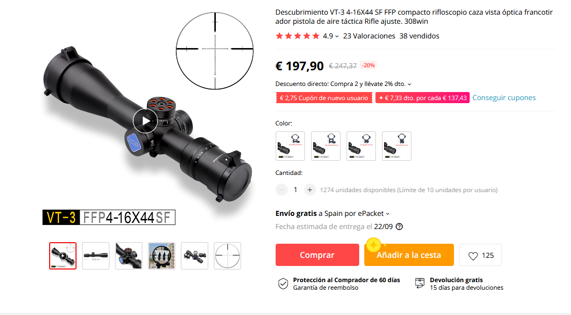 Discovery tiene una gama, la VT-3 con unos visores bastante compactos, tienen un 16x que mide 26.6 cm, lo único es que es retícula en primer plano, que a mí partcularmente no me gusta
