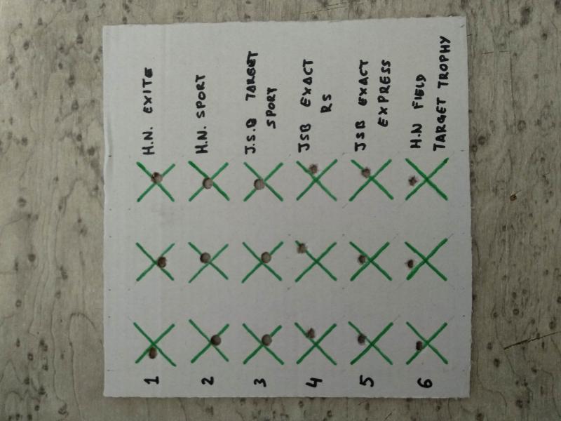 Pues si, a la hora de realizar grupitos, lo conveniente es hacerlo con 5 disparos y de ahí se saca la precisión del arma en cuestión , independientemente de la marca por supuesto. Resta decir que mientras más cerrados sean estos mejor podremos discernir el uso de la municion y de paso averiguar cuál es el balin que mejor le funciona al cañón.