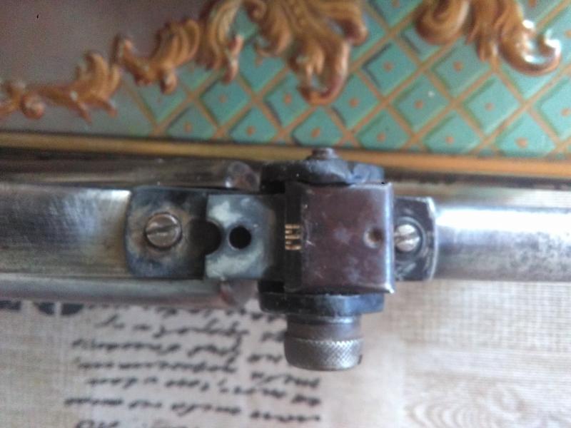 Y por otra parte la mira creo que está roto el alojamiento del tornillo de regulación de altura y le falta el tornillo ruedecilla que regula.