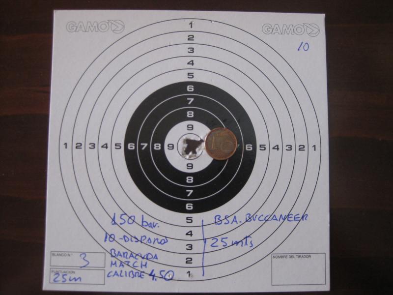 Imágenes de mis primeros disparos con mi baccaneer del calibre 4,5, tal como viene de fabrica sin regular nada.