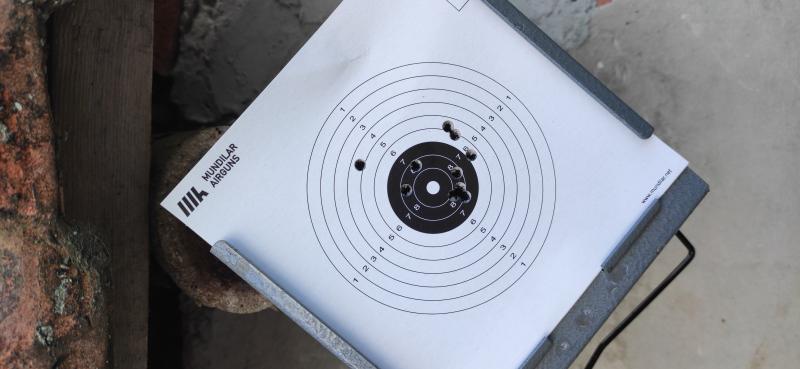 Bueno, pues por poner una más, subo esta de hace unos días. Fue un rato tonto que tuve que me aburría y saqué la 97k por cacharrear un poco. Son 5 tiros a pulso a 10 metros, carabina hw97k blackline del 4,5 a 16j, balines Solognac Club del Decathlon y visor Nikko Stirling 4-12x50AO. Esta carabina agrupa hasta borracho... Jejejejeje