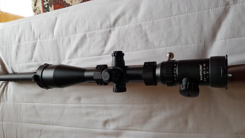 Hola, buenas tardes, ya me llegó el VK 8,5-25x50 , bonito es mogollón, e impone su aspecto, sin montar ni tocar ninguna torreta ni ajuste he mirado a través de él a una distancia de unos 15/20 metros y la retícula, muy fina, con gafas la veo perfecta, no así la imagen, se ve algo difuminada, esta tarde lo montaré ayudado por un nivel (dicen que es conveniente), y después de retoques y ajustes ya os diré como va, desde luego que este aparato nada tiene que ver con el BSA