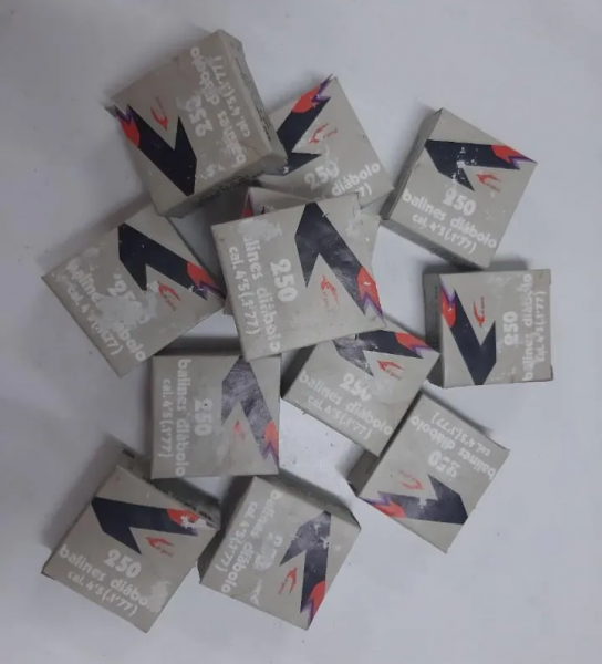 Muchas gracias, pues de balines viejos Gamo, de hace unos 40 años tengo bastantes cajas, tengo una ferreteria, anteriormente de mi padre y anterior de su jefe, y fué armeria tambien, y encontré una caja entre 4,5, y 5,5, habrá mas de 100 cajitas y latas, incluso de los conicos que te dan en las ferias, luego pongo fotos, son las latas y cajas color Beig, con las letras blancas y el gamo en negro y rojo, la antigua silueta, y calidad de los balines, mucho mejor acabados que ahora.