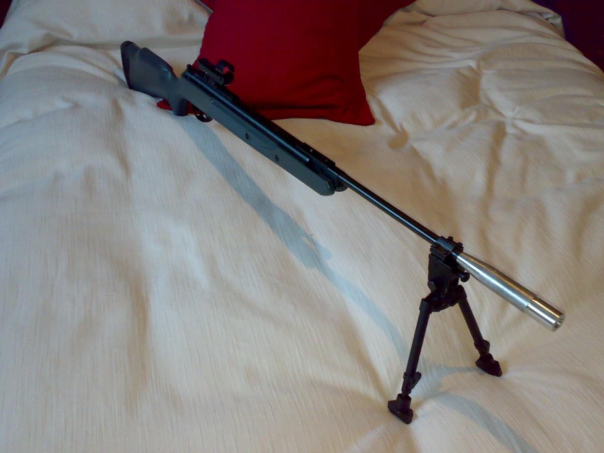 Si tiene perno anti retroceso. Yo llevo ahoramismo un visor de 60 (70mm reales) y aun me queda espacio libre entre campana y carabina. 30mm todas.