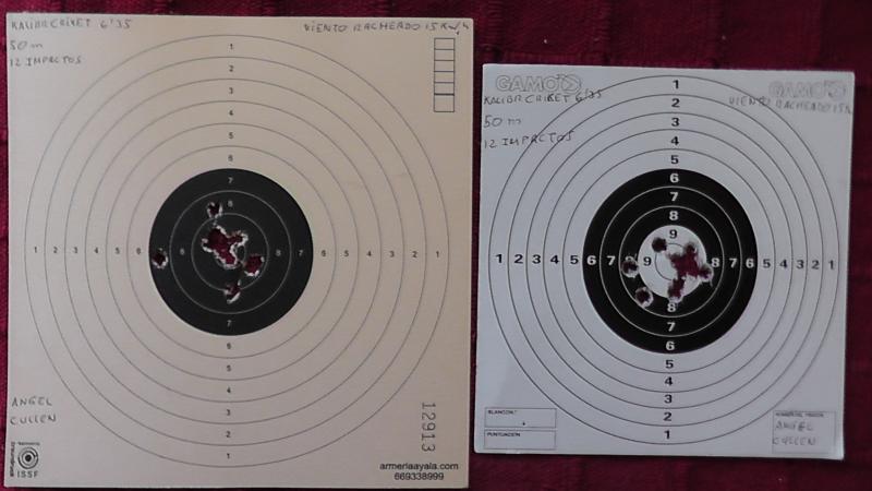 Agrupaciones de 12 Disparos a 50m. Viento racheado de 15 Km/h
