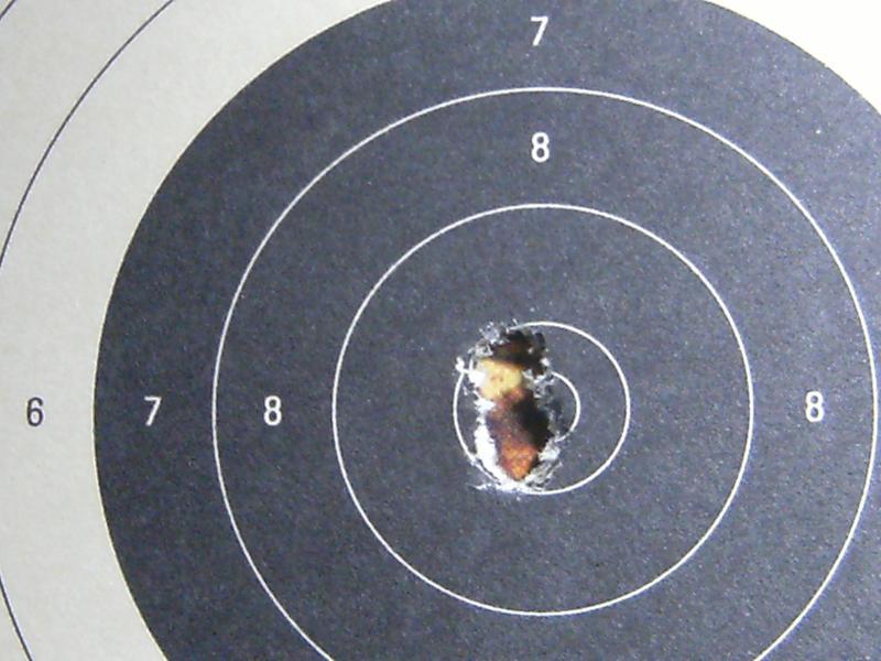 El último día que fuí al campo de tiro colgué una lata de refresco por su anilla a 50 m. Cuando me cansé de hacerle agujeros a la lata la descolgué rompiéndole la anilla. Eso es un blanco de unos 3mm a 50m. Creo que fue al segundo disparo igual que tú.